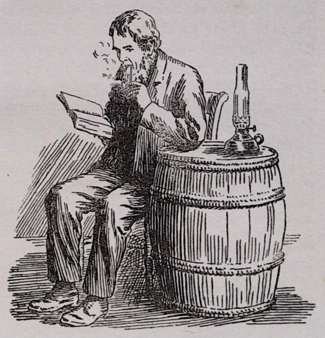 "Why, I should be quite lost without 'em," he used to say; "they be very handy for my old back to lean against, and when I'm tired of sitting by one, why, I've got two more to choose from." And so, while the sundry heaps of rags and bones, rusty iron and empty bottles and waste paper, etc., were constantly changing owners, the barrels remained in their original position, looking almost like sentries of the establishment.