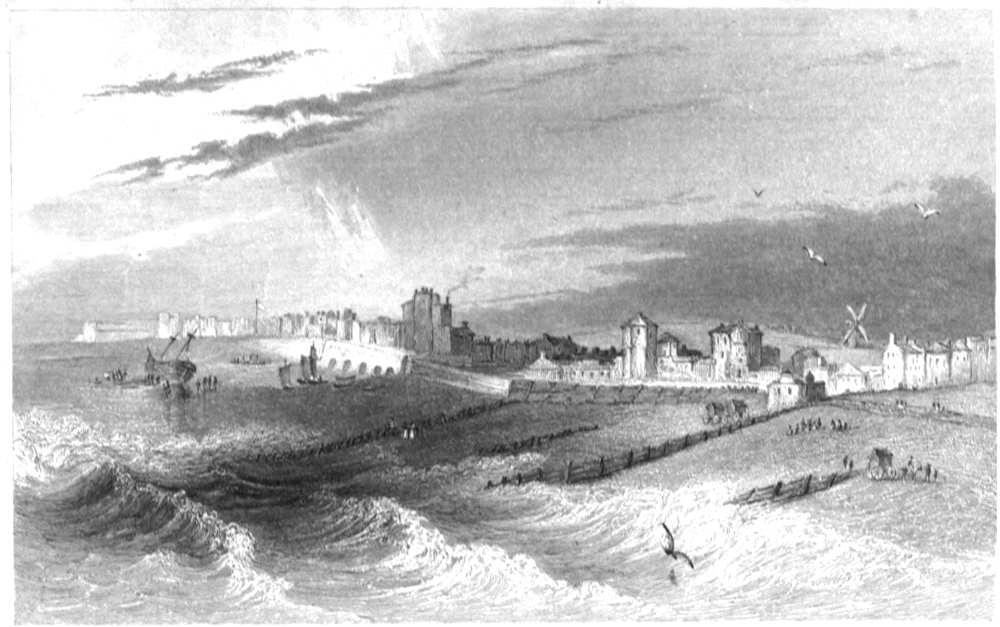 “Many years after this, during the war between Henry VIII. and Louis XII., the French appeared on the coast, with the intention of burning Brighton. Soon, however, the beacons were lighted; and the people seeing them, far and near, came together in such numbers, that the French thought it best to take themselves off without putting their cruel plan into execution. Queen Elizabeth afterwards granted some money to the town of Brighton, with which land was purchased, and a building[Pg 26] made to hold their stores and ammunition: beside this, she ordered four strong gates to be built, leading from the cliff to the town beneath it, and a high wall of flints, which extended on both sides of the storehouse.”