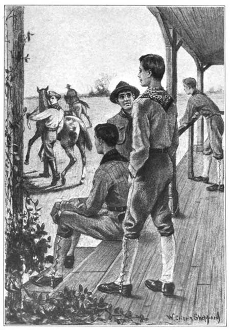 [11]All the lads with the exception of Don Stratton showed the beneficial effects of outdoor life. Clear skins, cheeks flushed with the ruddy hue of health, and keen steady eyes stamped each with an air of vigor and strength.