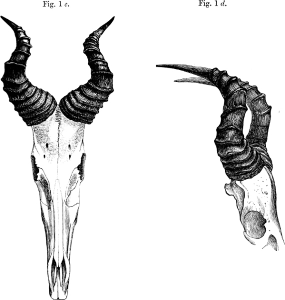 [4] These variations in curvature are probably mainly due to differences in age, the growth of the curved basal part of the horns giving at the various stages widely different directions to their tips.—S. & T.