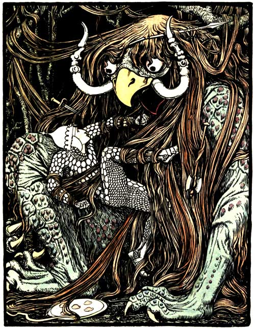 Curiously enough, the negro form of the five-fold attack—"fighting with five fists," Mr. Barr would call it—is probably nearer to the original legend than that preserved in the Jataka, though 2000 years older. For we may be sure that the thunderbolt of Knowledge did not exist in the original, but was introduced by some Buddhist Mr. Barlow, who, like Alice's Duchess, ended all his tales with: "And the moral of that is——" For no well-bred demon would have been taken in by so simple a "sell" as that indulged in by Prince Five-Weapons in our Jataka, and it is probable, therefore, that Uncle Remus preserves a reminiscence of the original Indian reading of the tale. On the other[253] hand, it is probable that Carlyle's Indian god with the fire in his belly was derived from Prince Five-Weapons.