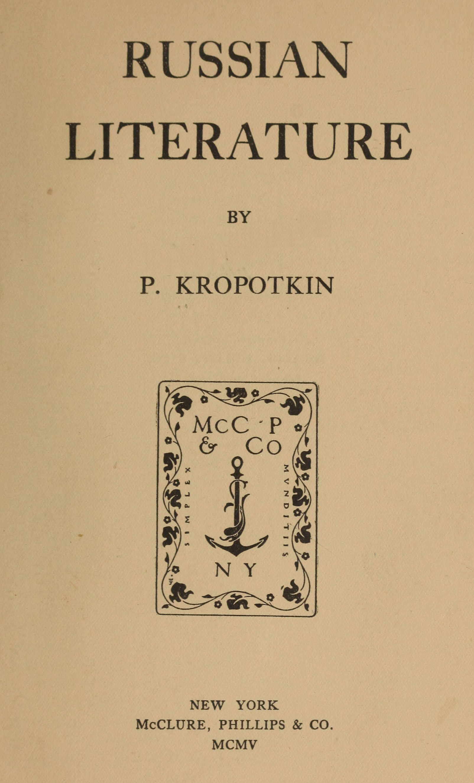 As it would have been impossible to exhaust so wide a subject as Russian Literature within the limits of this book, I have concentrated my chief attention upon the modern literature. The early writers, down to Púshkin and Gógol—the founders of the modern literature—are dealt with in a short introductory sketch. The most representative writers in poetry, the novel, the drama, political literature, and art criticism, are considered next, and round them I have grouped the less prominent writers, of whom the most important are mentioned in short notes. I am fully aware that every one of the latter presents something individual and well worth knowing; and that some of the less-known authors have even succeeded occasionally in better representing a given current of thought than their more famous colleagues; but in a book which is intended to give only a broad, general idea of the subject, the plan I have pursued was necessary.