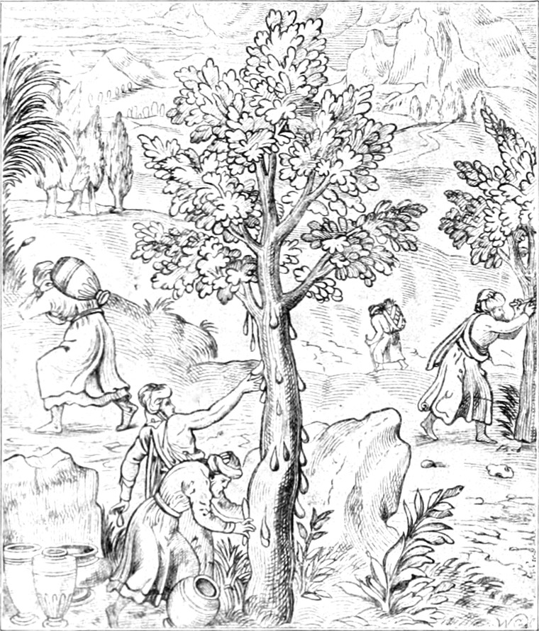 Auch DIOSCURIDES erwähnt oft die Verfälschungen und gibt die Zeichen für die Echtheit und Güte an, z. B. bei der Keltischen Narde, der Cassia, dem Zimt, dem Balsam. Beim Safran gibt er eine Anleitung zur Erkennung von ausgezogenem (Krokomagma) oder mit eingedicktem Moste, mit zerriebener Bleiglätte oder Molybdaina (Minium) verfälschtem Safran. Und PLINIUS bemerkt vom Safran «adulteratur nihil aeque» und vom Pfeffer, daß er mit Wachholderbeeren vermischt werde.