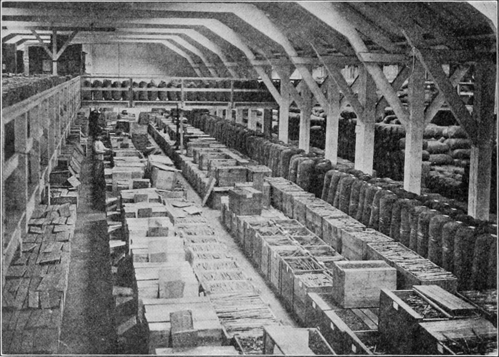 Von vielen Drogen wissen wir, daß sie durch längere Aufbewahrung an Wert verlieren. Es kommt dies daher, daß die Stoffumsetzung innerhalb einer Arzneipflanze oder einem Teile derselben nicht mit dem beim Trocknen eintretenden Absterben erlischt, sondern daß auch in der trocknen Droge noch mannigfache Umsetzungen stattfinden. Der Alkaloidgehalt vieler Drogen geht mit der Zeit zurück (Alkaloiddrogen), auf Veränderungen in der Zusammensetzung deutende Geruchsänderungen treten ein (Lupulin), die Farbe verändert sich (z. B. von grünlich in rot: Filix), der Geruch verschwindet oder geht zurück (Riechstoffdrogen). Sehr merkwürdig ist es, daß die meisten Riechstoffdrogen rascher ihren Geruch verlieren und «dumpfig» werden, wenn sie dicht übereinander geschichtet in hermetisch verschlossenen Gefäßen aufbewahrt werden. Es geschieht dies besonders dann, wenn die Drogen nicht ganz trocken sind. Auch Herb. cannabis darf nicht in festverschlossenen Gefäßen aufbewahrt werden, sondern (am besten) in perforierten Holzbüchsen. Für Aufbewahrung von Drogen eignen sich am besten Holzfässer, Hartpappe-Kisten oder -Fässer oder Blechbüchsen.