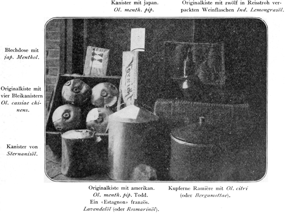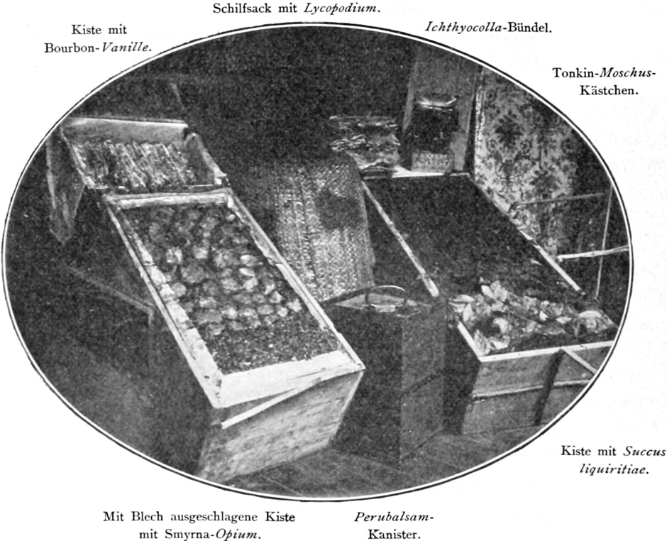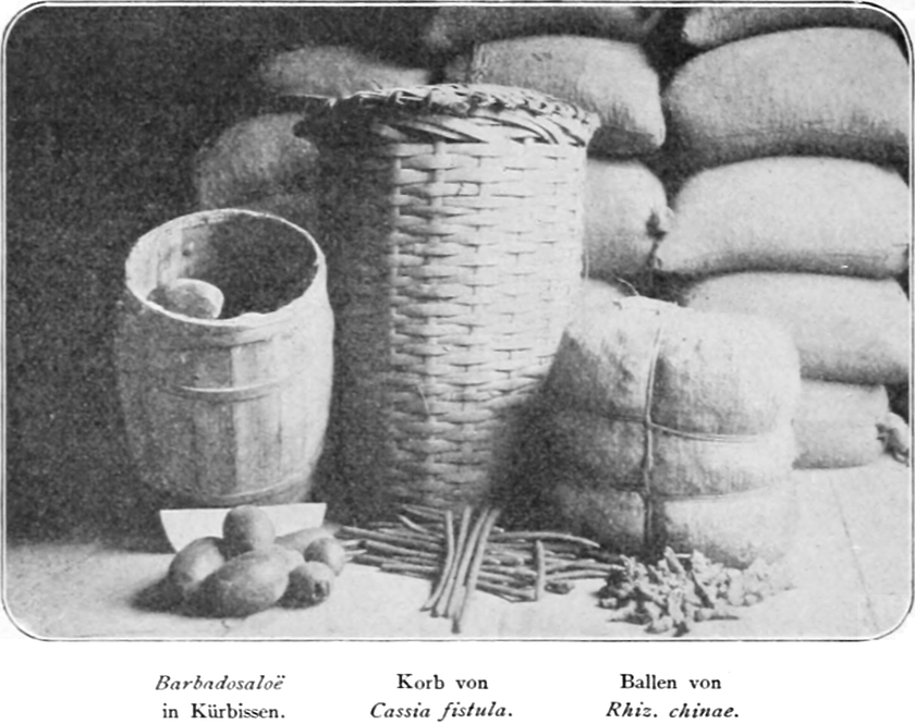 In die Bresche getreten sind aus eigener Initiative und auf eigene Kosten einige große Drogenhandlungen des Binnenlandes, die übrigens zum Teil direkte Verbindungen mit den überseeischen Plätzen unterhalten und auch einige Importeure in Hafenplätzen. So unterwerfen z. B. GEHE & CO., CAESAR & LORETZ, SCHIMMEL & CO., HÄNSEL, MERCK, ROEDER, J. D. RIEDEL, BRÜCKNER, LAMPE CO, JULIUS GROSSMANN u. and. die wichtigsten Waren einer sorgfältigen chemischen Kontrolle und die Handelsberichte dieser Firmen enthalten viele wertvolle Mitteilungen über bei der Prüfung erzielte Ergebnisse, die besonders für die angewandte Pharmakognosie[S. 283] von Wichtigkeit und längst ein Faktor geworden sind, mit dem der Praktiker und die Redakteure der Pharmakopoeen rechnen müssen.
