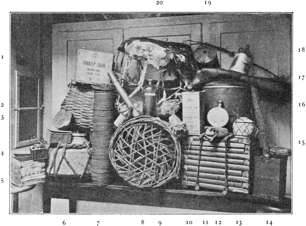 Zur Kennzeichnung der ausgestellten Waren und Gerätschaften auf den Tafeln XXX und XXXI waren im Original die betreffenden Bezeichnungen auf ein Deckblatt aus transparentem Papier gedruckt. In der vorliegenden Fassung wurde die Beschriftung vom Bearbeiter direkt in die Abbildungen eingefügt.