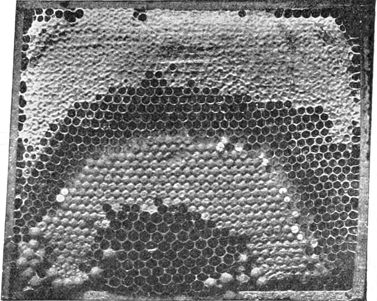 Eigenschaften. Die Farbe des Rohwachses differiert ziemlich stark. Sie ist hellgelb bei dem Wachse aus der Türkei, von Smyrna, Jaffa und der Levante, aber auch die chilenischen und Belladi- (ägyptischen) Wachse, die von Benguela, Sassi und die schwedischen und einige deutsche sind relativ hell; dunkelgelb ist im allgemeinen das deutsche, belgische, italienische, marokkanische und kubanische Bienenwachs, grünlichgelb das amerikanische und ostindische, rotgelb einige Sorten des französischen und italienischen. Nur die Wachse von Madagascar und St. Domingo sind dunkelbraun fast schwarz. Die Farbe des Wachses hängt nicht mit der Farbe der Blüten zusammen, sondern wohl mit der der Pollenkörner, besonders der eigenartigen, oft stark gefärbten Massen, die oft den Pollenkörnern anhängen und die z. B. bei Verbascum tief orangerot[S. 766] gefärbt sind (TSCHIRCH, vgl. oben S. 21). Auch KÜSTENMACHER sagt: «Die ausgeschiedene Propolis, der Balsam des Pollens, gibt dem Wachsbau des Biens die Farbe.»