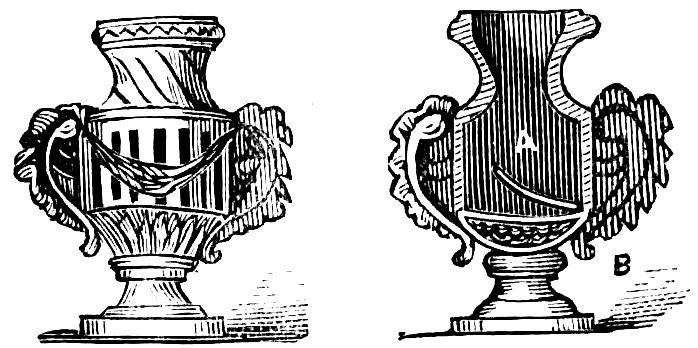 Take two pieces of fancy paper with one side in colours, patterns, or marbling, about seven inches square, put the coloured sides together, and cut them at the same time in the shape of Fig. 7.
