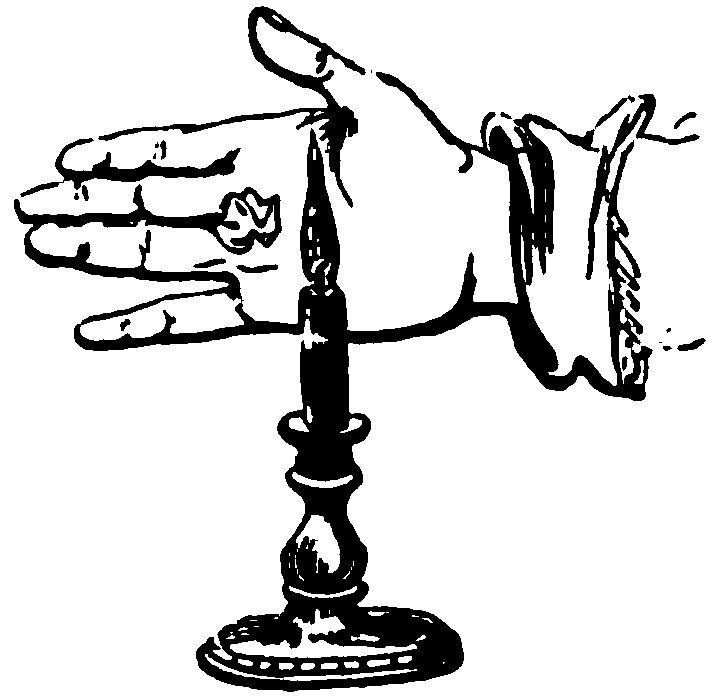 Cover the palm with sand, ashes, or any non-conductor, and calmly put the live coals on it. Which ancient “sell” will be found in the first German mediæval play, entitled “The Burning Iron,” by Hans Sachs, “performed 17for the first time in Nuremberg in the year 1531.” A peasant woman suspects her husband of some crime, and she arranges with her mother that he must pass under the ordeal of the “burning iron”—that is, a piece of iron made red-hot must be picked up with his bare hand, and carried round the room. If his hand remain unscathed, he is innocent; if he be burnt, then he is guilty. The husband promises to undergo the ordeal; but before doing so, manages to place, unseen by his wife, a flat piece of wood upon the hollow of his hand, and with this deception he passes through the ordeal successfully. Mr. Hanky Panky believes this gentleman to have been his “long-lost brother.”