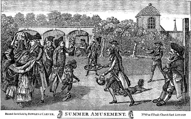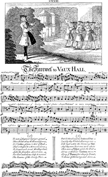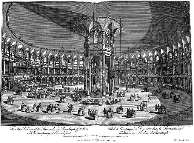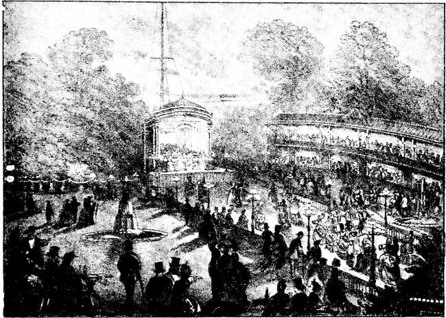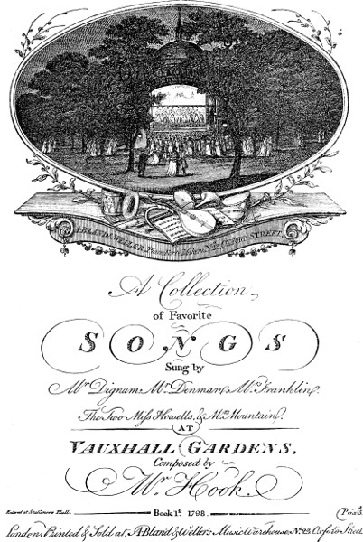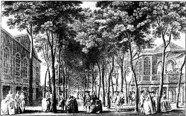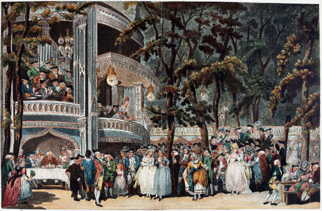 “A great deal of company, and the weather and garden pleasant and it is very cheap and pleasant going thither.... But to hear the nightingale and the birds, and here fiddles and there a harp, and here a Jew’s trump, and here laughing and there fine people walking is mighty divertising.”—Samuel Pepys.