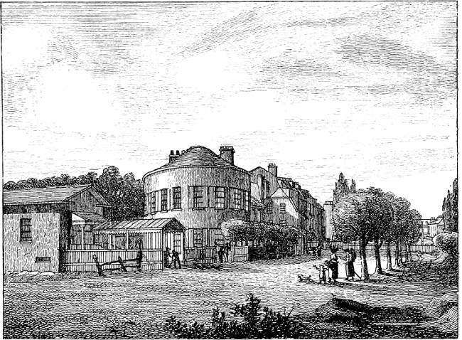[334] From about 1827 the entrance chiefly used by the public was the “coach-entrance” at the corner of Kennington Lane.