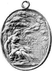 [306] A specimen in British Museum (from Miss Banks’s Coll.). Silver, size 1·25 inch; Obverse: Lazarius Riverius.—Non omnibus dormio.—Miseris succurrere disco. Bearded head of Rivière, to left; beneath head, the number “18” incised. Reverse: The original Spaw in St. George’s Fields so memorable in the Plague, 1665.—For the proprieters (sic) T. Townshend Alchemist to his Majesty, 1760. Another specimen described in C. A. Rudolph’s Numismata (relating to medical men), 1862, p. 45, has the words “Robert Baker, Esq., Twickenham,” evidently the subscriber’s name, engraved on the edge.