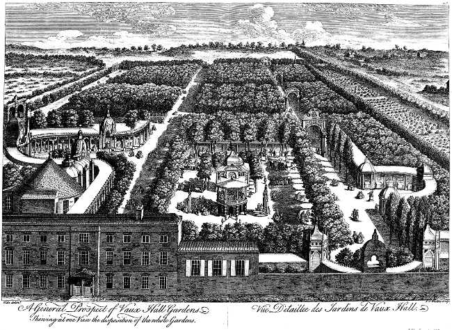 [318] In the advertisements the name Vauxhall Gardens first appears in 1786, but many years before that date the place was often popularly known as Vauxhall Gardens.