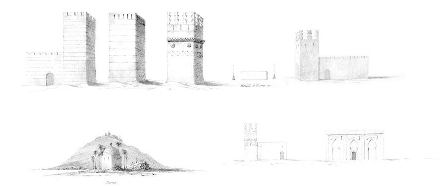 Saturday, Nov. 14.—Got up early, and breakfasted with Mr. Hay. The day cold but fine. We visited the castle and outskirts of the town and prison. Saw the armour, the town fountains, and Socco.[4] After lunch we went to the Kaid, to whom we made our presents, and received in return mona—one sheep, twelve fowls, and one hundred eggs; we then visited the tombs of the Sheiks, and returned by Vally.