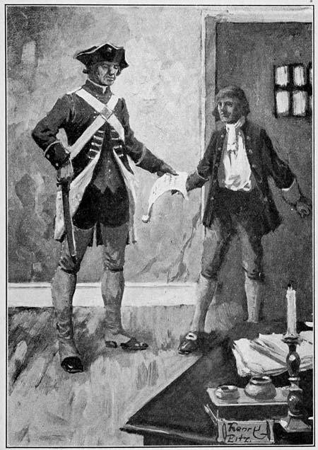 “Halt where you are!” exclaimed Hawkins, and as the Tory hesitated the soldier raised his gun a few inches. “Let me see your orders.”