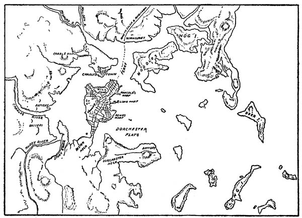 Boston in the days of the Revolution resembled Boston of to-day in one noticeable respect: many of the streets were narrow and crooked and bore the names that they bear at present. But the differences between the old town and the new are many and astonishing. In Revolutionary days mud flats, which were exposed at low water, lay where South Boston and the Back Bay are now situated; near where the present North Station stands there used to be a broad placid mill-pond that extended down almost to Hanover Street; and to the south,[5] where to-day many broad streets and avenues cross one another over a wide space, there used to be a very narrow strip of land known as the Neck—to have cut it would have made of the town an island. Such in brief was the Boston of Donald Alden and of his friends.