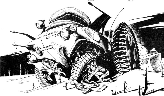 Three of those ships were equipped with the streamlined nose-shells and wings necessary to make actual landings on Mars. Number One, my ship, was supposed to make the first landing, on skis, near the edge of the north polar cap. We carried a pair of double-unit sand-tractors, each of which had quarters for four in the front section and carried a featherweight bulldozer on the trailer.