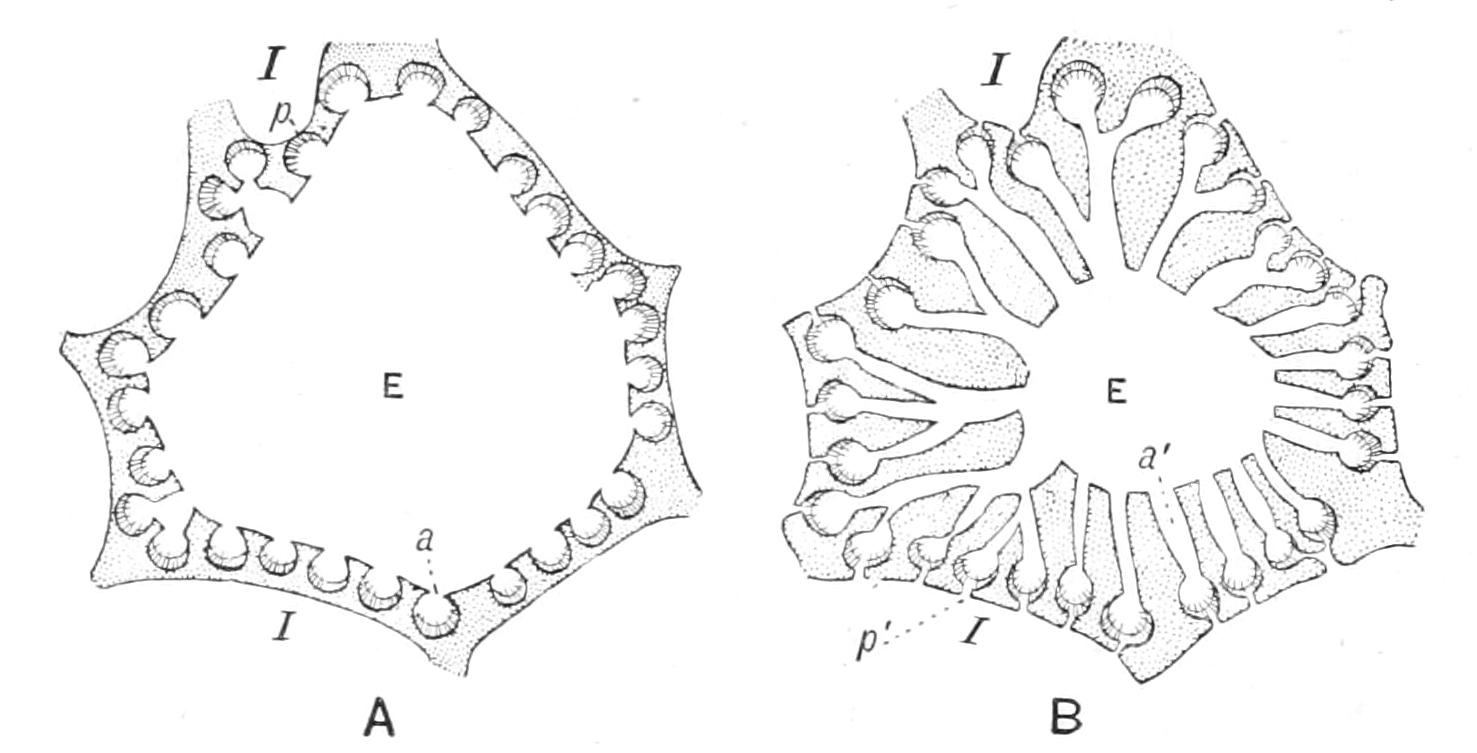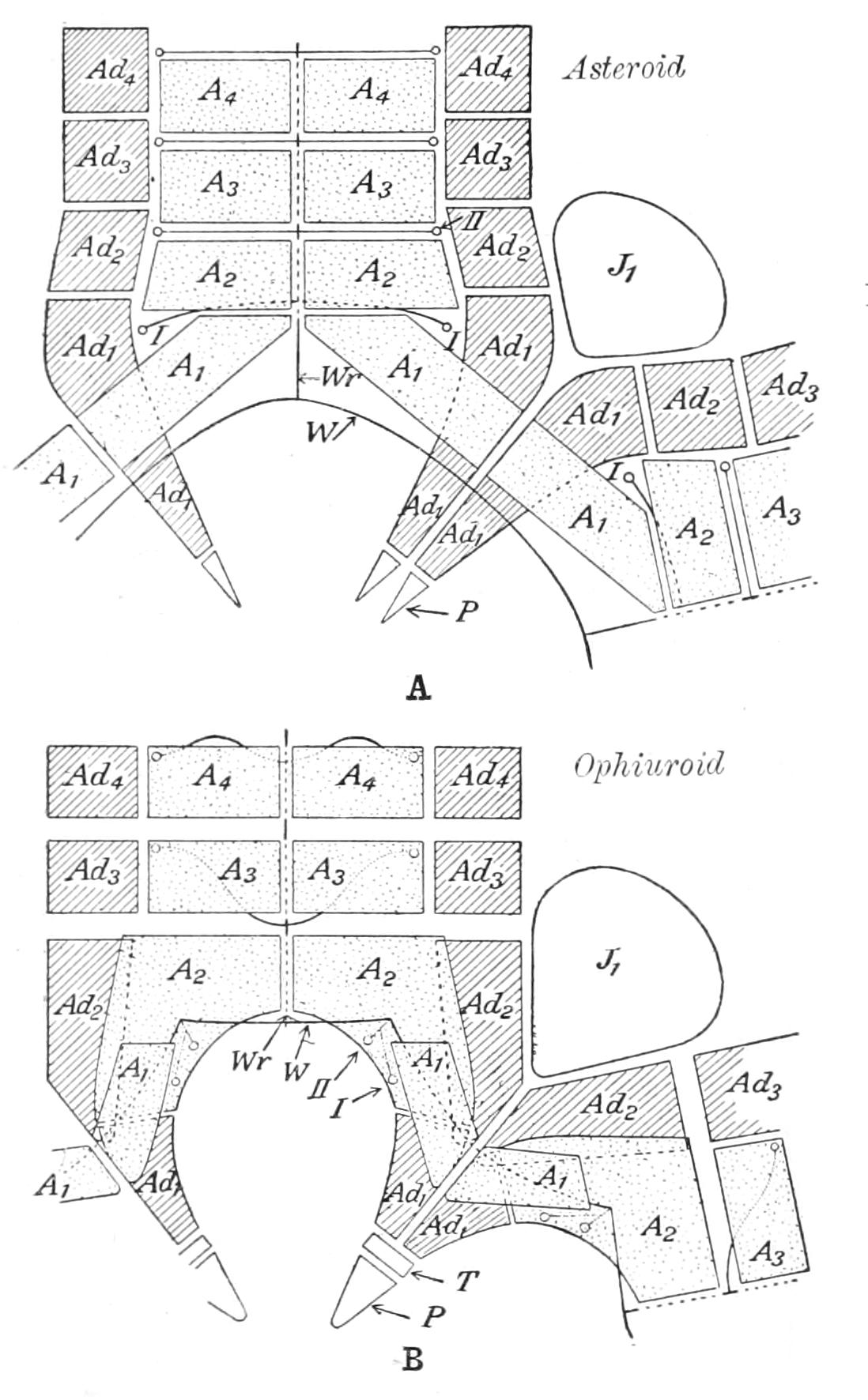 This type of mouth-frame is represented in Fig. 215, A, by a figure of Ophioscolex, which belongs to the Streptophiurae.