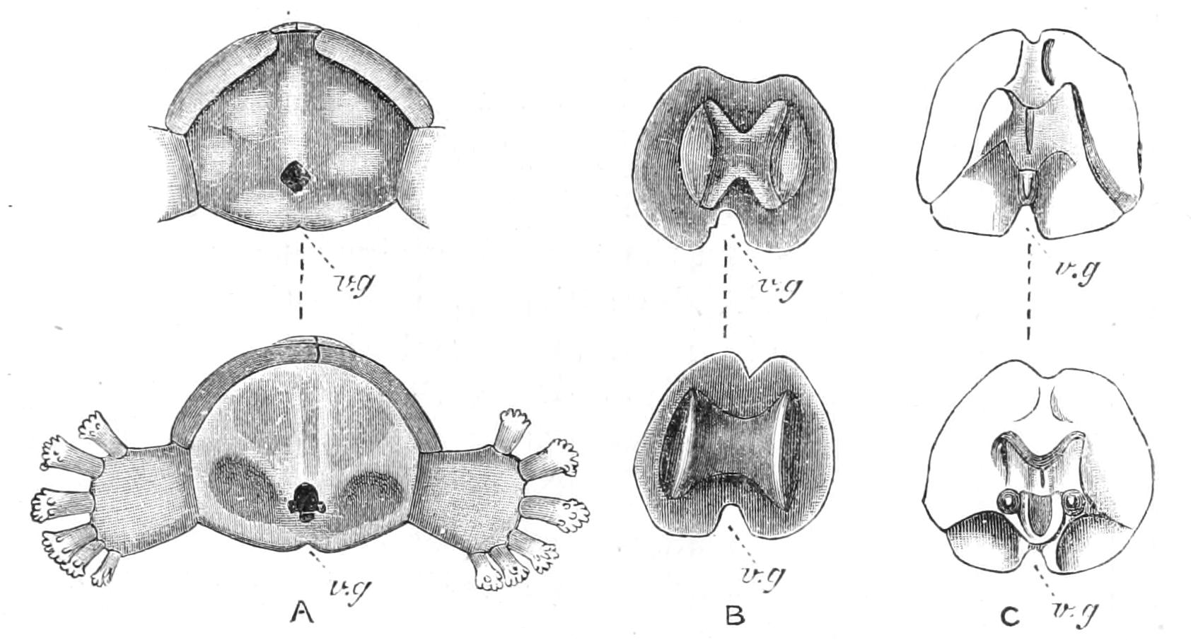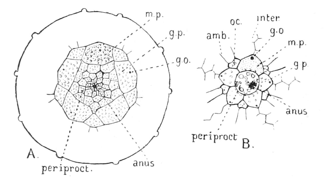 This account of the periproct is different from that ordinarily given. It is based on the most recent examination of this family—Agassiz, "Panamic Deep-sea Echini," Mem. Mus. Comp. Zool. xxxi. 1904, p. 36.