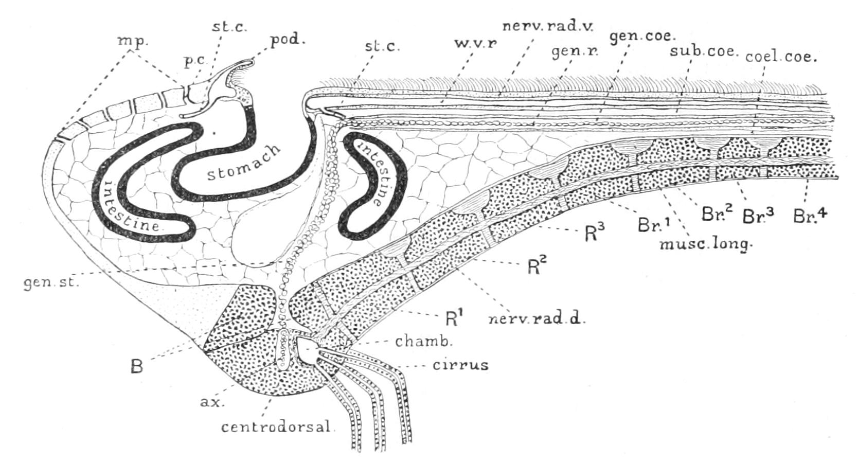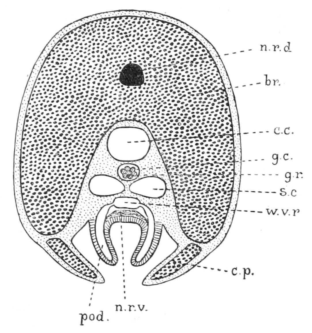This figure does not show the animal's attitude during forward progression quite correctly. The tips of the two anterior arms should be bent outwards, not inwards as in the figure.