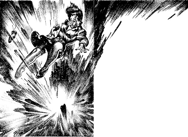 "I don't know for sure," the woman replied. "It might be anything ... even common dirt. It doesn't matter. The point is that whatever it is, it's been charged so that when it's exposed to air, it just naturally blows everything around it all to hell and gone. Mr. Epperson opened the other one, and I guess that's why he was vaporized. I ducked around the rock just in time."
