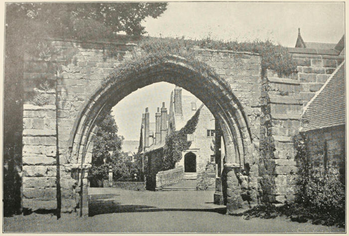 About a mile from Melbourne is the village of King’s Newton with its picturesque ruin, the remains of an Elizabethan Hall, the ancient residence of the Hardinge family. About thirty-five years ago it was burnt down. King Charles I. is said to have been entertained here by Sir Robert Hardinge. After the King’s departure, some lines were discovered written on a pane of glass, and signed “Carlos, Newton Regis,” which accounts for the name. The view from the terrace is a very extensive one, over the valley of the Trent, with Derby and the high lands of the Peak district in the distance.