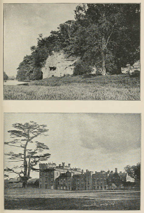 About two miles to the east of Repton the level meadow-land of the Trent valley suddenly rises and forms a perpendicular bank, composed of conglomerate rock, with bands of sandstone. The Trent, which used to flow close to the bank, now flows at some distance away, the old course is still indicated by a pool of sedge-girdled water, (close in front of the rock,) which joins the river a little lower down. The face of the rock is irregular and broken into picturesque bays, with ivy-covered fissures between them, the whole crowned with trees, brushwood, and bracken.