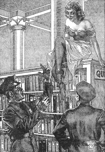Agatha and Chadwick, at the sound of running footsteps, glanced up, caught glimpses of each other and became instantly animated. Springing quickly to their feet, they frantically clutched their brief coverings to them where they would do the most good, and started to run, their bare feet slapping dully against the tiled floor. They raced through the entrance and out onto the sidewalk, the policemen in hot pursuit.