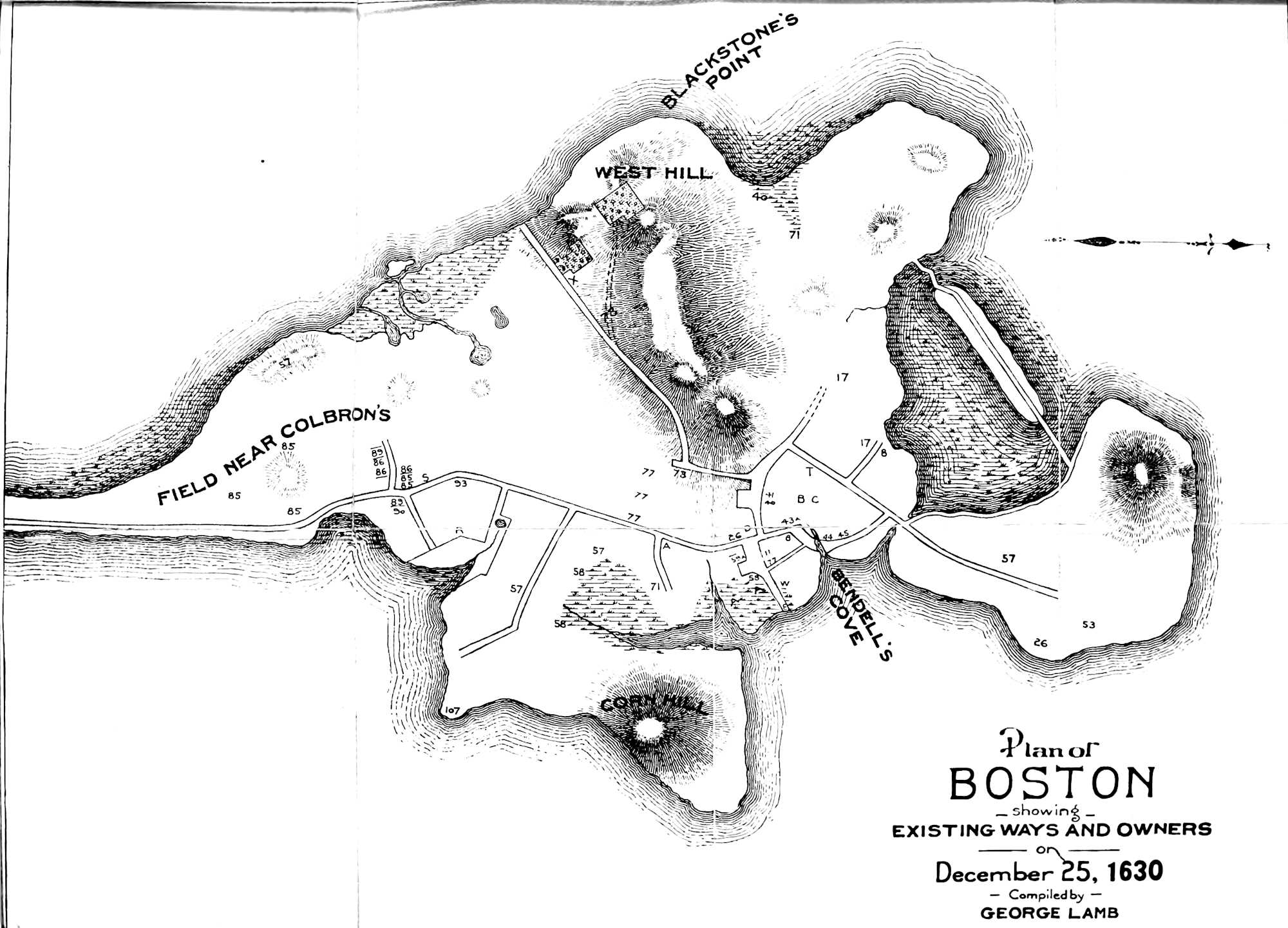 The New Field was located at the west part of the town in the angle bounded by the present Cambridge street, and extending through Lynde and Leverett streets to Haugh’s Point. The principal town landing was at the head of the cove or dock, around which Valentine Hill’s highway was laid out in 1641. Street names were not given until a later period, though the present Washington street was known as the “High street, the great street or highway to Roxbury.”