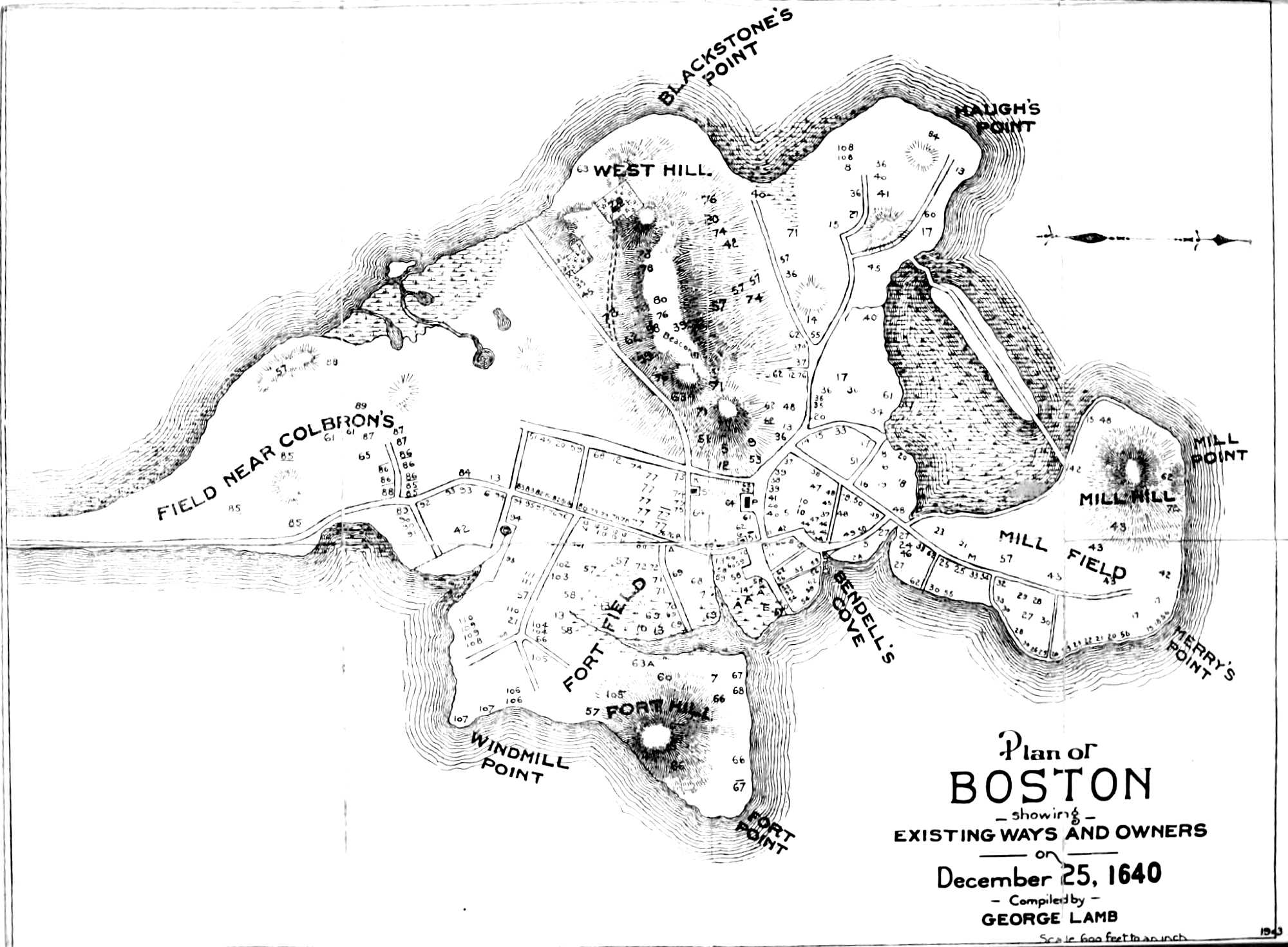 The plan dated December 25, 1645, while in the main correct, does not show all the transfers made during that year, as will be seen by consulting Suffolk Deeds, Lib. 1, as noted in the introduction to the Book of Possessions (Volume 2 of the Boston Records), the first 111 pages of which were written by William Aspinwall prior to the 10th month, 1645.