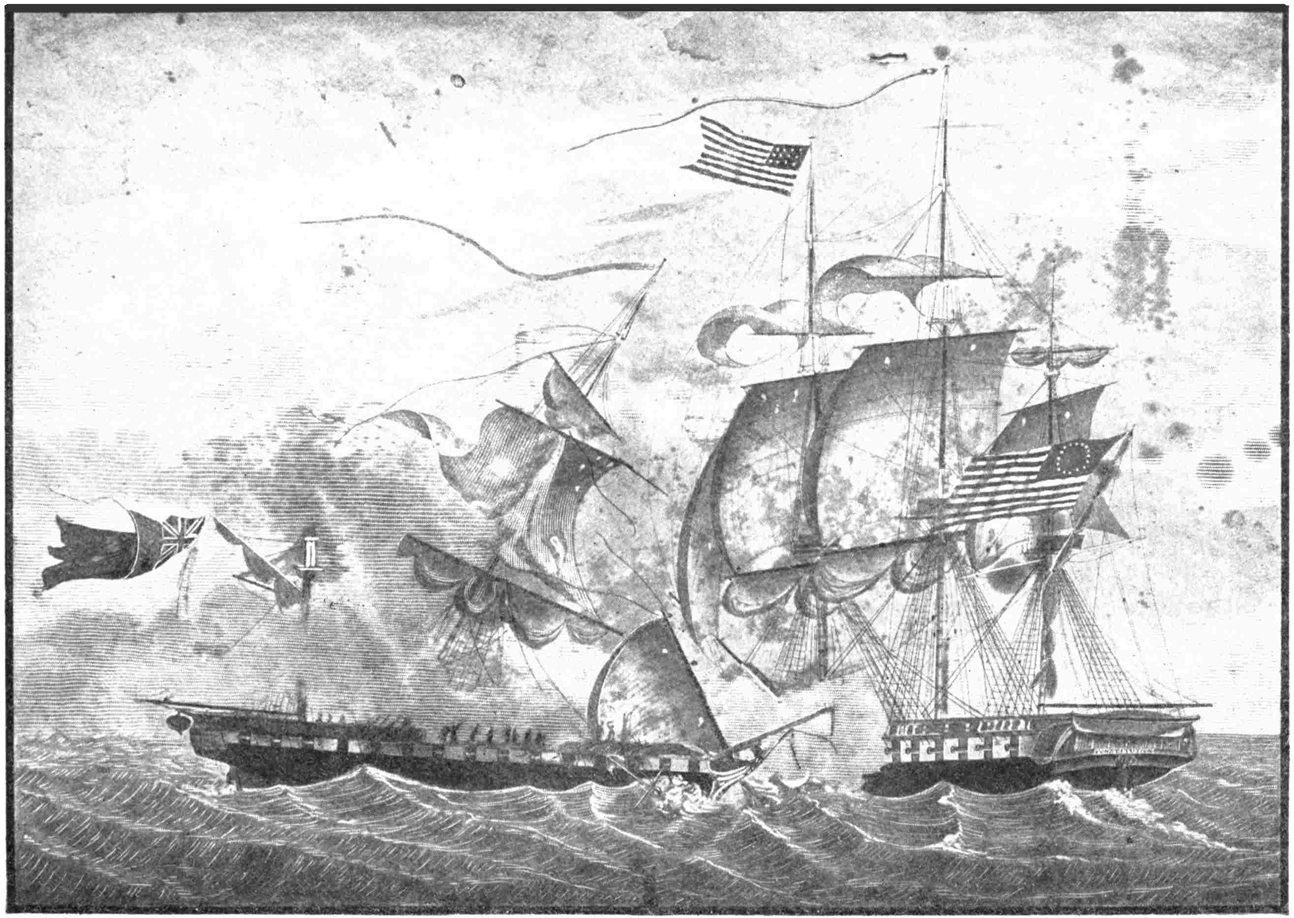 | The Remarkable Battle between the Yankee Hornet and the British Peacock—The British Ship was so Pretty she was Known as “The Yacht,” but her Gunners could not Hit the Broadside of the Hornet when the Ships were in Contact—As her Flag came Down a Signal of Distress went Up, for she was Sinking—The Efforts of two Crews could not Save her—“A Vessel Moored for the Purpose of Experiment could not have been sunk Sooner”—Infamous Treatment of American Seamen Repaid by the Golden Rule—Captain Greene, of the Bonne Citoyenne, did not dare Meet the Hornet. | |