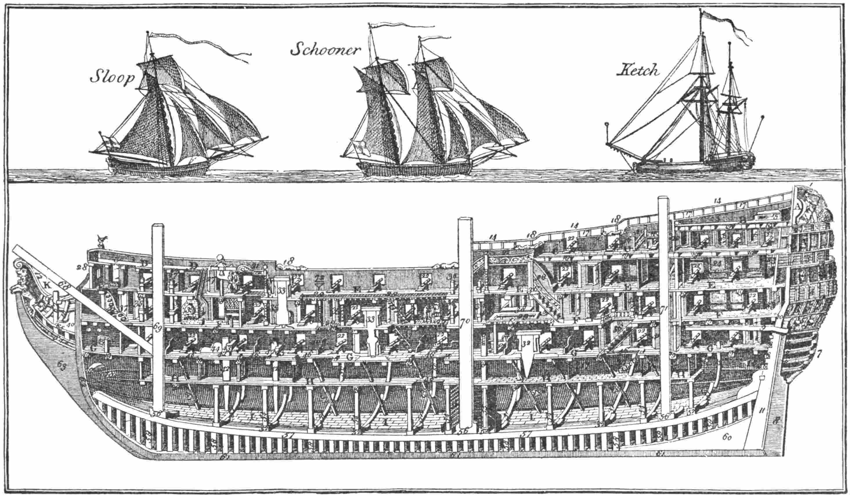 | The Internal Arrangements and Stowage of an American Sloop-of-war. (From the “Kedge Anchor”), | 28 |