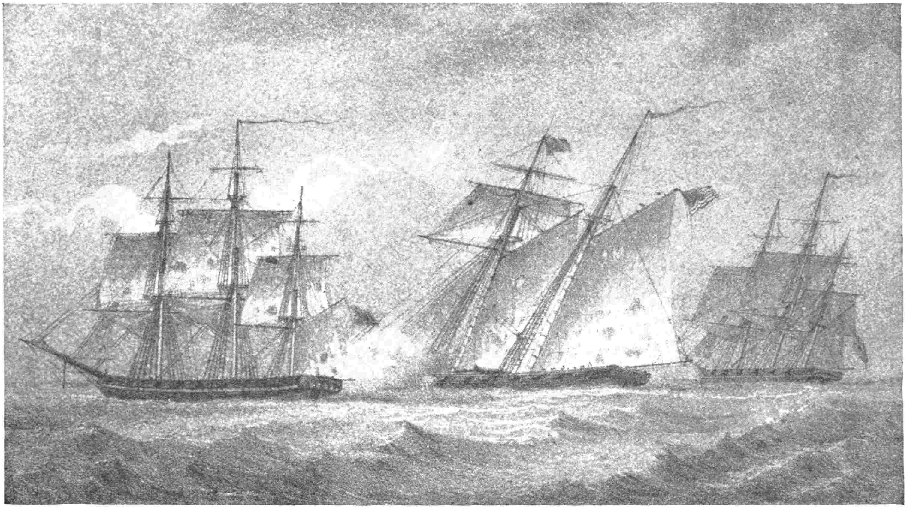 | Chase of the Constitution off the Jersey Coast. (From the painting by Inch at the Naval Academy, Annapolis), | 65 |