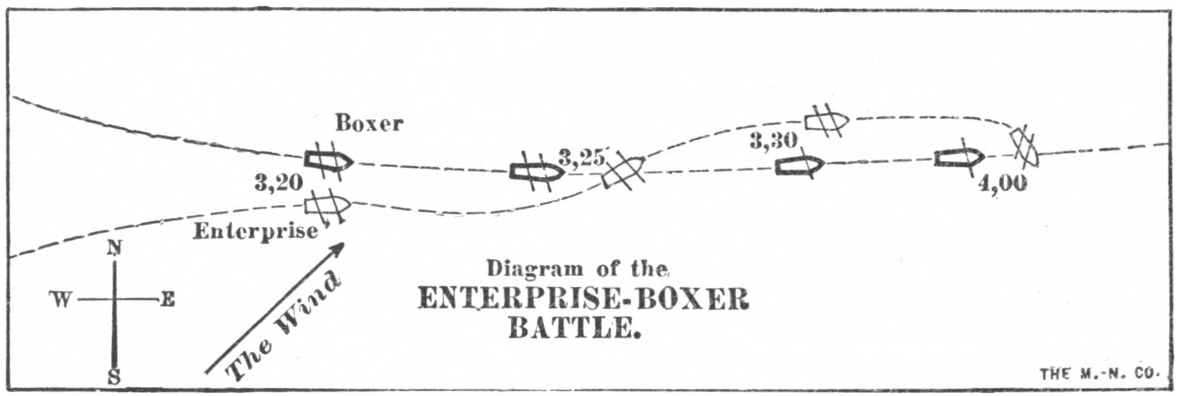 | There was never a more fortunate Vessel than the Clipper-schooner Enterprise—As originally Designed she was the Swiftest and Best All-around Naval Ship of her Class Afloat—Men she made Famous in the West Indies—A Glorious Career in the War with the Mediterranean Pirates—Even when the Wisdom of the Navy Department Changed her to a Brig and Overloaded her with Guns so that she “Couldn’t Get Out of her own Way,” her Luck did not Fail her—Her Fight with the Boxer—Even a good Frigate could not Catch her. | |