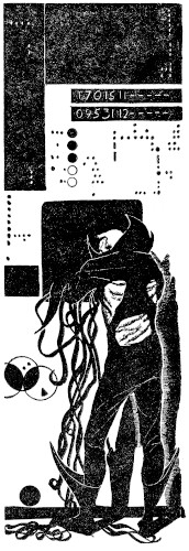 The living room was shadowy and almost dark, despite the glass. Kimmensen crossed the softly whispering rug. "Apparently Susanne hasn't come home yet. She told me she was going to a party this afternoon." He took a deep, unhappy breath. "Sit down, Jem—I'll get you a drink while we're waiting." He touched the base of a lamp on an end table, and the room came to life under a soft glow of light. The patio went pitch-black by comparison.
