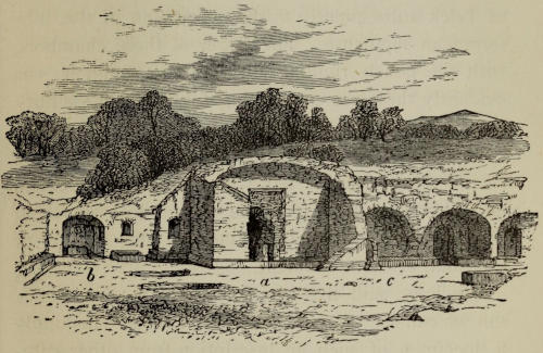 Without further preface, then, let us set out on our walk. Let us proceed along the Via Appia till we come to a doorway on the right-hand side, over which we read the words “Cœmeterium S. Callixti.” On entering the vineyard our attention is first arrested by a ruined monument standing close beside us. We shall have already seen others more or less like it on both sides of the road since we came out of the city; and in answer to our inquiries we shall have learnt that they are the remains of what were once grand Pagan tombs, covered, probably, with marble and ornamented with sculpture. Without stopping then to inquire whether anything special is known about the history of this particular mausoleum, we will walk forward to another more modest building standing in the middle of the vineyard. It looks small and mean; and if we could enter it, we should find that it is used only as a convenient magazine for the stowing away of fragments of sarcophagi, or tombstones, extracted from the cemetery which underlies[128] it. Yet its apsidal termination, and the other apses on either side of the building, naturally suggest to us that it must once have had something of an ecclesiastical character. In truth, it was one of the “numerous buildings constructed throughout the cemeteries” by Fabian, pope and martyr, in the middle of the third century (see page 27), and was known to ancient pilgrims as the cella memoriæ, or chapel of St. Sixtus and of St. Cæcilia, being built immediately over the tombs of those martyrs. Originally, the end or fourth side of the building was unenclosed, that so larger numbers of the faithful might assist at the celebration of the holy mysteries: indeed the side-walls themselves were not at first continued to[129] their present length, but the building consisted of little else than the three exedræ or apses.