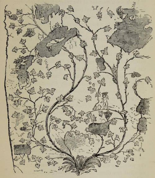 We are drawing very near to the end of our subterranean walk: indeed, the staircase which is to restore us to the upper air close to the very entrance of the vineyard is immediately behind us, as we stand contemplating the tomb of St. Cornelius. Nevertheless, if we are not too weary, nor our guide too impatient, we should do well to resist the temptation to escape, until we have first visited two small chambers which are in the immediate neighbourhood. They contain some of the most ancient specimens of painting to be found in the whole range of the Catacombs. The ceilings are divided into circles and other geometrical figures, and then the spaces are filled up with graceful arabesques, birds, and flowers, peacocks, and dancing genii. It was the sight of such paintings as these which led the Protestant writer quoted in a former chapter to express an opinion that, on first entering some of the decorated chambers in the Catacombs, it is not easy to determine whether the work is Christian or Pagan. Here, indeed, the Good[166] Shepherd in one centre and Daniel between two lions in the other soon solve the doubt; but all the other details and the excellence of their execution may well have suggested it. No one can doubt that the paintings belong to the very earliest period of Christian art, when the forms and traditions of the classical age had not yet died away.