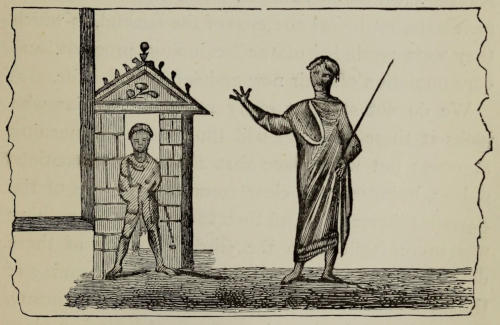 It was the common practice of Roman gentlemen and ladies of wealth to make in their wills very minute provisions for their tombs, and for certain rites and ceremonies to be performed at their tombs after death. They ordinarily set apart some portion of a field or garden near the high road, accurately measured off with so many feet of frontage and so many feet into the field behind; and in the middle of this plot they ordered a monument to be erected—often a chamber of considerable dimensions, with an altar of stone or of fine marble in which their bones or ashes should be laid, and benches of the same material, with cushions and all else that was necessary for the convenience of guests, whom they invited to come and partake here of a feast in their memory, both on the anniversary of their death and on several other occasions. The cost of the tomb was often specified in the will, and recorded on the epitaph; and the expenses of the feasts were met partly by contributions from dependants[13] of the deceased who were intended to partake of it, partly by the rent of certain houses or gardens, or by the interest of moneys bequeathed by the deceased himself or by others for this purpose. The execution of this part of the will was commonly intrusted to some one or more faithful freedmen, who had a direct interest in its fulfilment; and heavy fines were inflicted on the heirs in case of neglect.