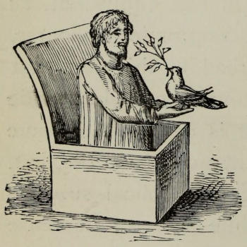 Look, for example, at the numerous pictures of Noe in the ark which appear in the Catacombs, all resembling one another, but none resembling the reality. Instead of a vessel, three stories high, containing eight human beings and specimens of every kind of animal, we see only a narrow box, barely large enough to hold one person, and that person sometimes a lady, whose name is also inscribed upon it perhaps, being the same lady (as we learn from the inscription) who lies buried in the adjacent tomb. If all ancient Christian literature had perished, we should have been at a loss to comprehend this enigma; but as soon as we know that the Fathers of the Church speak of it as an acknowledged fact, which “nobody doubts” (to use St. Augustine’s words), that the Church was typified by the ark, a[91] ray of light begins to dawn upon us; and when we call to mind that St. Peter himself speaks of the waters of baptism as saving men’s souls, “even as Noe and his family were saved by the waters of the flood,” all is at once made clear. We see plainly that the friends of the deceased have intended to signify that he had been received into the ark of the Church and made a Christian by baptism. And if they had added to the composition, as they often did, the figure of a dove bringing an olive branch to the person standing in the ark, this also enters into the same interpretation; it was symbolical of that Divine peace which comes to the soul in this world by faith, and which is a pledge of the peace given by everlasting happiness in the next.