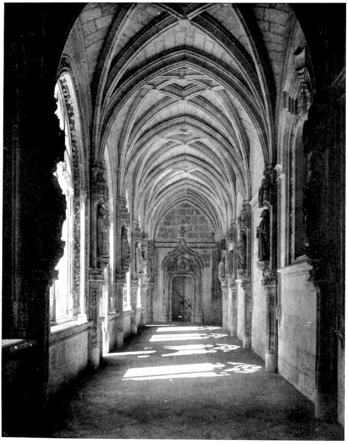 Such was the “plateresque” or “silversmith” method of elaborate decoration, seen at its best at Avila in the beautiful Renaissance tomb of Prince John, which though ornate is yet refined and pure, at its most florid in the façade of the Convent of San Pablo at Valladolid. Under its blighting spell the strong simplicity of an earlier age withered; and Gothic and Renaissance styles alike were to perish through the false standard of merit applied to them by a decadent school.