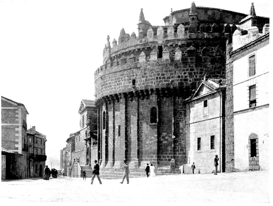 In architecture at this time the evidence of foreign influence is also strong. On the one hand are Gothic Churches like San Juan de Los Reyes at Toledo or amongst secular buildings, the massive castle of Medina del Campo; on the other, in contrast to these northern designs, Renaissance works with their classic-Italian stamp, such as the Hospital of Santa Cruz at Toledo or the College of the same name at Valladolid. Yet a third element is the Moresque, founded on Mahometan models, such as the horseshoe arch of the Puerta del Perdón of the old Mosque at Seville overlaid with the emblems of Christian worship. The 420characteristics of North, South, and East, are distinct; yet moulded, as during the previous centuries, by the race that borrowed them to express ideals peculiarly its own.