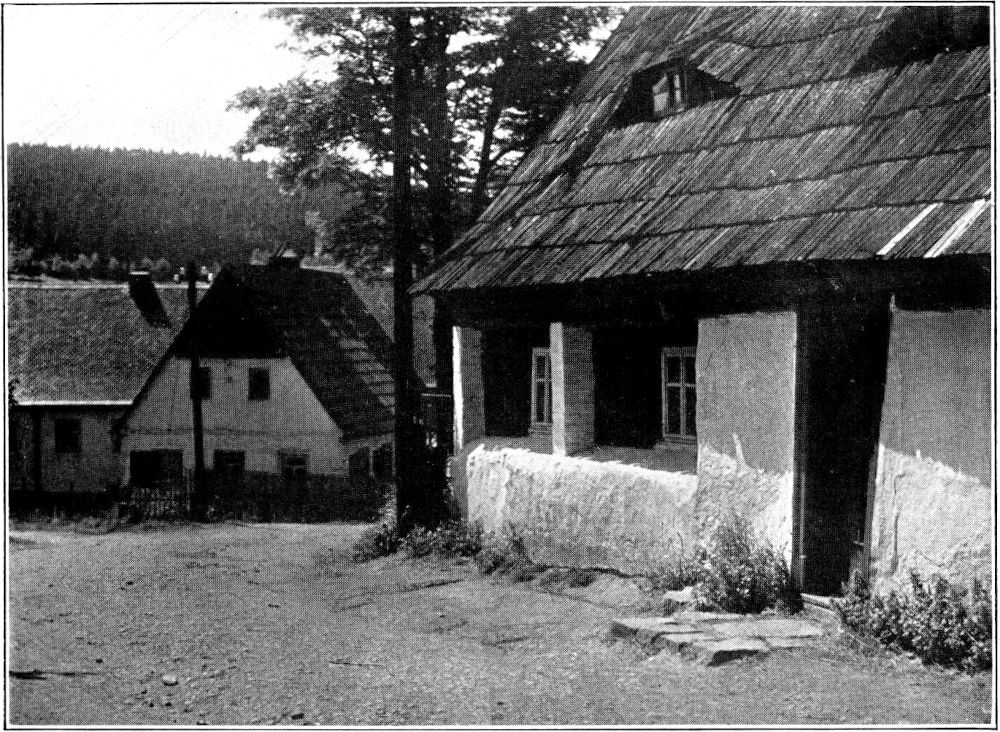 »Das Material zu Strohdachungen aber wächst uns zu.« Dieser Satz erklärt das zahlreiche Vorkommen der Strohdächer. So kann aber nicht der Kammbewohner sagen. Herb bleibt dort droben die Feldarbeit, wo im Mai die Luft noch rauh zieht und die Nebel ihre Heimat haben, wo der Frühherbst zuweilen dem Häusler schon Schnee in den Hafer wirft und die Kartoffel in der Furche überwintern will. Da langt das wenige Stroh kaum für die Kuh im Stalle als Streu. Ihm wächst aber das Material zu seinen Schindeln zu im ausgedehnten Bergwalde.