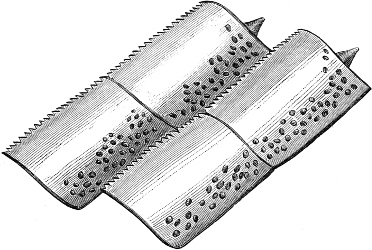 When a sufficient number of well-preserved examples have been brought together, they should be sent home by the earliest opportunity. Each specimen should be wrapped separately in a piece of linen, or at least soft paper; the specimens are then packed as close as herrings in the zinc case, so that no free space[701] is left either at the top or on the sides. When the case is full, the lid is soldered on, with a round hole about half an inch in diameter near one of the corners. This hole is left in order to pour the spirit through it into the case. Care is taken to drive out the air which may remain between the specimens, and to surround them completely with spirits, until the case is quite full. Finally, the hole is closed by a small square lid of tin being soldered over it. In order to see whether the case keeps in the spirit perfectly, it is turned upside down and left over night. When all is found to be securely fastened, the zinc case is placed into the wooden box and ready for transport.