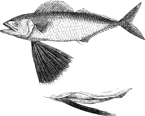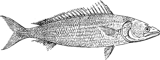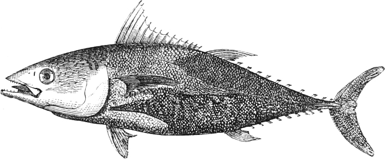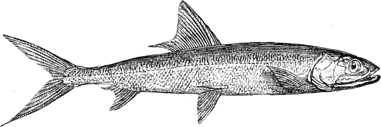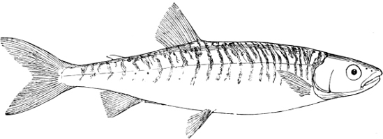 [43] Mackerel, like other marine fishes, birds, and mammals of prey, follow the shoals of young and adult Clupeoids in their periodical migrations; on the British coasts it is principally the fry of the Pilchard and Sprat which wanders from the open sea towards the coast, and guides the movements of the Mackerel.