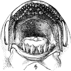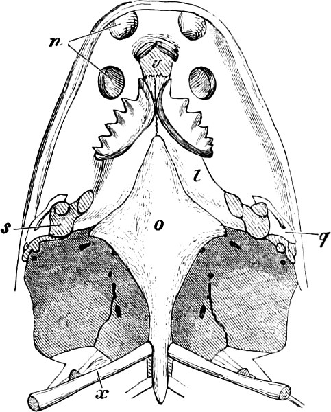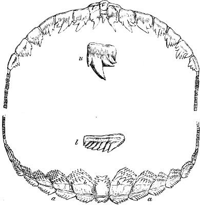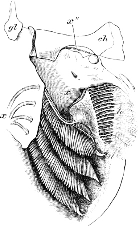 [47] Fig. 317 is taken from a specimen in which the horny covers of the dentition were lost, hence it does not represent accurately the shape of the teeth.