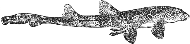 | Families: Carchariidæ (Blue Shark, Tope, Hammerhead, Hound), 316—Lamnidæ (Porbeagle, Carcharodon, Fox-Shark, Basking-Shark), 319—Rhinodontidæ, 323—Notidanidæ, 324—Scylliidæ (Dog-fishes), 325— Hybodontidæ, 328—Cestraciontidæ (Port Jackson Shark), 328—Spinacidæ (Spiny Dogs, Greenland Shark), 330—Rhinidæ, 334—Pristiophoridæ, 335. | ||