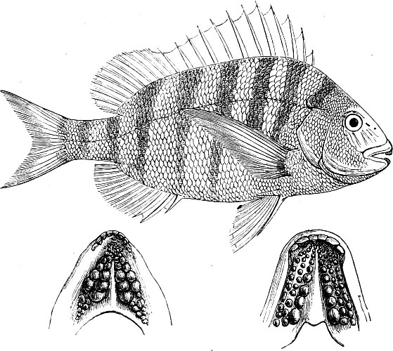 | Fishes are dioecious, 157—Hermaphroditism, 157—Oviparous and viviparous fishes, 157—Generative organs of Branchiostoma, 157—of Cyclostomes; their ova, 158—Female organs of Teleosteans and their ova, 158—Instances of females taking care of their progeny, 160—Male organs of Teleosteans, 162—Instances of males taking care of their progeny, 163—Generative organs of Ganoids, 163—of Chondropterygians and their ova, 166. | |