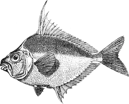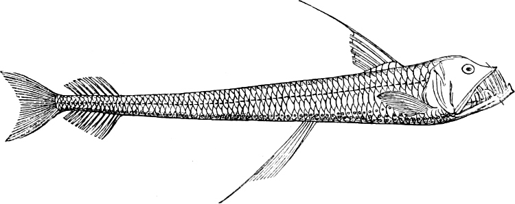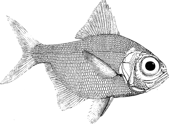 Many pelagic and deep-sea fishes are provided with peculiar small round organs of a mother-of-pearl colour, distributed in series along the side of the body, especially along the abdomen. Some zoologists consider these organs as accessory eyes, others (and it appears to us with better reason) as luminous organs. They deserve an accurate microscopic examination made on fresh specimens; and their function should be ascertained from observation of the living fishes, especially also with regard to the question, whether or not the luminosity (if such be their function) is subject to the will of the fish.
