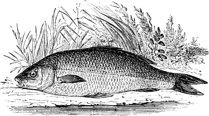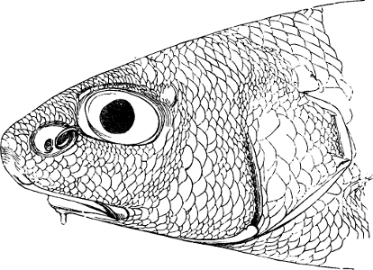 [4] In the formula generally preceding the description of a fish, “L. lat. 40,” would express that the scales between the head and caudal fin are arranged in 40 transverse series; and probably, that the lateral line is composed of the same number of scales. “L. transv. 8/5” would express that there are eight longitudinal series of scales between the median line of the back and the lateral line, and five between the lateral line and the middle of the abdomen.