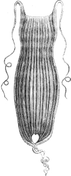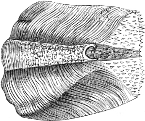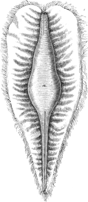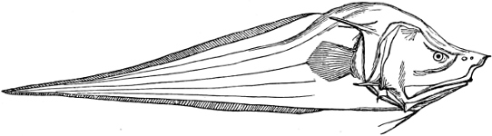 The “Lancelet” (Branchiostoma lanceolatum, see Fig. 28, p. 63), seems to be almost cosmopolitan within the temperate and tropical zones. Its small size, its transparency, and the rapidity with which it is able to bury itself in the sand, are the causes why it escapes so readily observation, even at localities where it is known to be common. Shallow, sandy parts of the coasts seem to be the places on which it may be looked for. It has been found on many localities of the British, and generally European coasts, in North America, the West Indies, Brazil, Peru, Tasmania, Australia, and Borneo. It rarely exceeds a length of three inches. A smaller species, in which the dorsal fringe is distinctly higher and rayed, and in which the caudal fringe is absent, has been described under the name of Epigionichthys pulchellus; it was found in Moreton Bay.